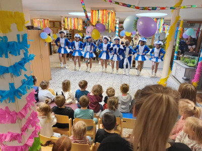 Begleitet von Karnevalsmusik sangen sie fröhlich und tanzten! Anwohnerinnen und Anwohner öffneten Fenster und Türen und winkten den kleinen Jecken zu. Wie schön! Die Altweiberfeier in der Kita St. Marien ist eine liebgewonnene Tradition, die nicht nur den Kindern große Freude bereitet. Nach dem Umzug kehrten die Kinder voller Freude in die Kita zurück, wo die Feier mit Tanz, Musik und weiteren Spielen weiterging.