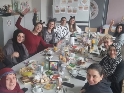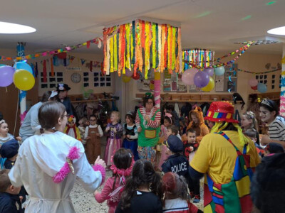 Tags darauf ging es dann fröhlich weiter: Im Elterncafé des BIZM-L wurde mit Musik und einem bunten Frühstück Weiberfastnacht gefeiert. Die Stimmung bestens!