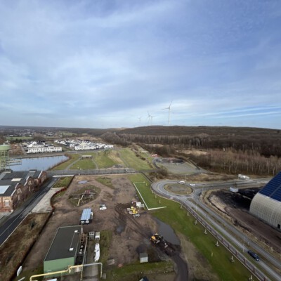 Für die Bürgermeisterin war schon der erste Besuch auf dem Förderturm ein Erlebnis, das nachhaltigen Eindruck hinterlassen hat. Im Jahresrückblick bei Mittendrin hat sie darauf bereits hingewiesen. Warum, das zeigen die Bilder von der Aussicht, die man dort oben hat.