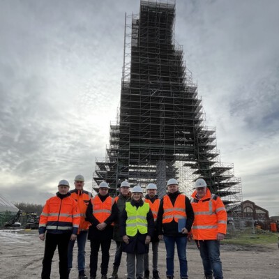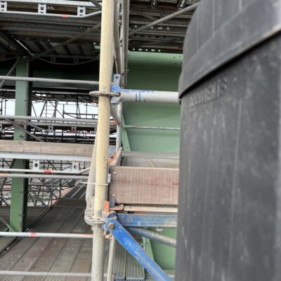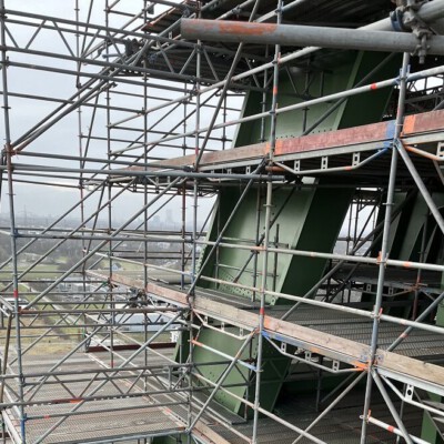 Die Sanierung ist auf der Zielgeraden: Seit dem Sommer sind die Seilscheiben zurück, aktuell werden noch einige restliche Arbeiten für den Korrosionsschutz ausgeführt. Dann wird er da wieder stehen wie seit seinem Bau im Jahr 1956.