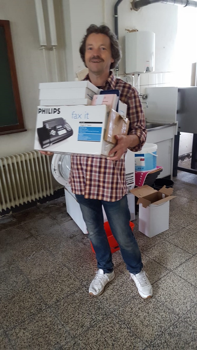 Typisch und ein großer Vorteil bei jedem Umzug: Wer gezwungen ist, alle alten Sachen einmal durchzugehen, kommt endlich auch mal dazu, den alten Krempel auszusortieren, der nicht mehr benötigt wird und schon seit Jahren ungenutzt im Keller liegt. So auch in der Schule. Dort füllten sich sehr schnell zwei große Container mit Müll. Das Kollegium ist aber noch lange nicht fertig.