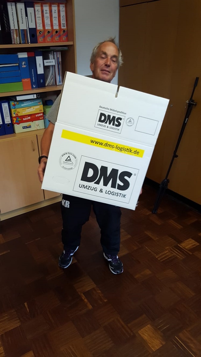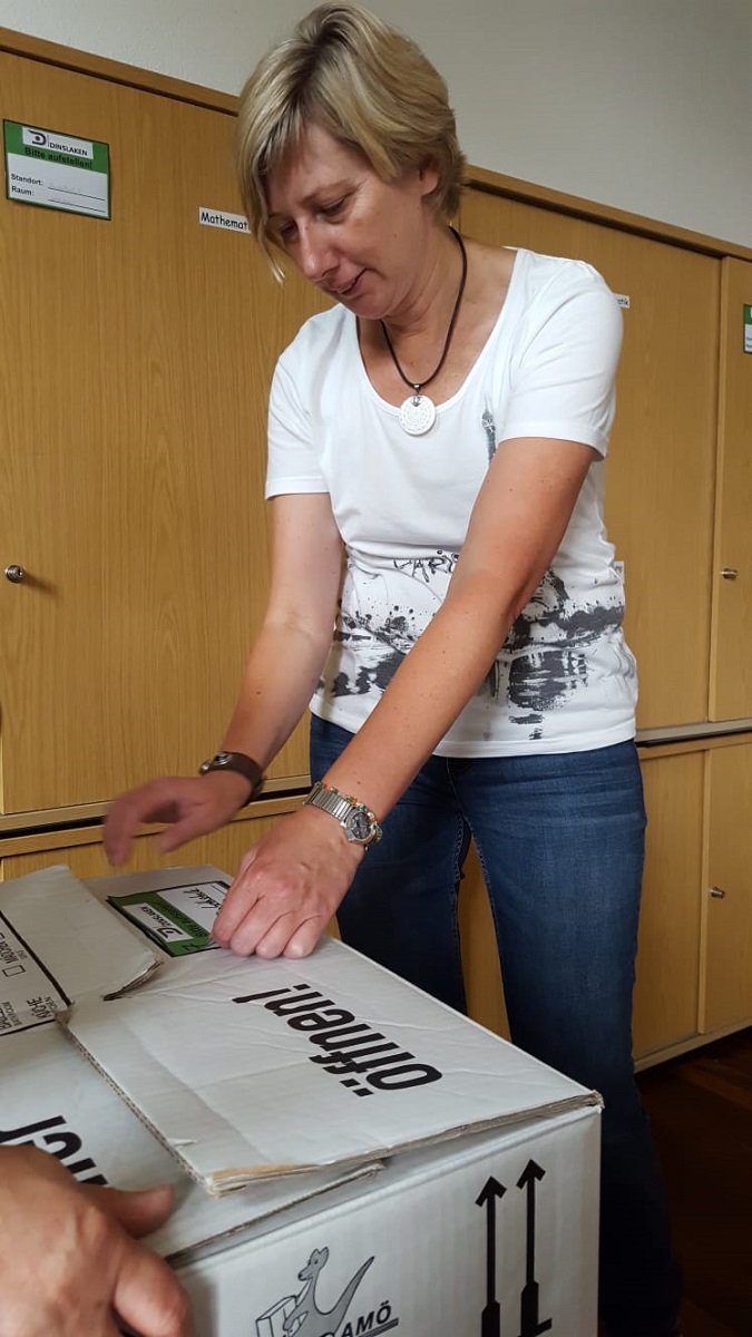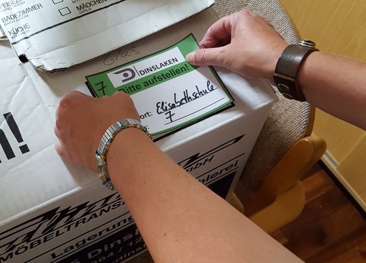 In diesem Fall, mitten in Lohberg, zieht aber nicht ein vergleichsweise kleiner Privathaushalt, sondern eine ganze Schule um. Ende Mai wurden zunächst 500 Kartons angeliefert, und das war erst der Anfang.