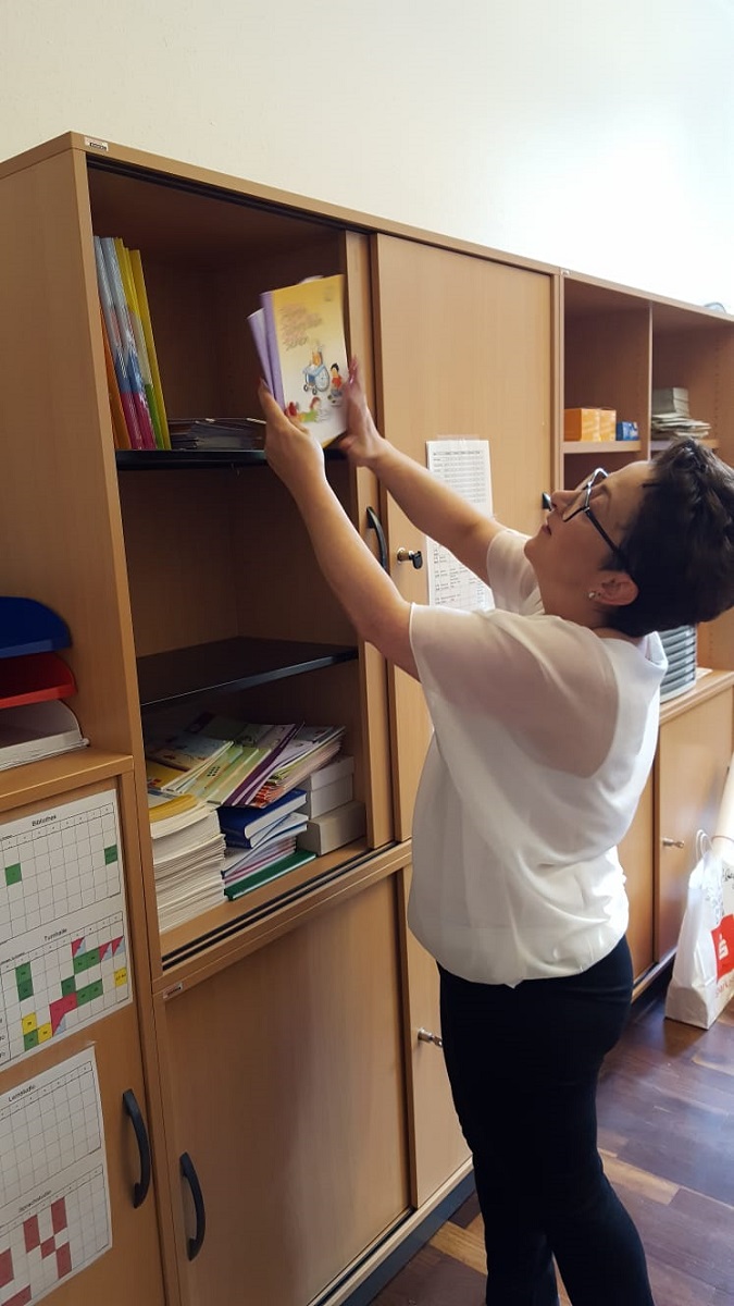 Am vergangenen Freitag packten nun erstmals in einer großen Gemeinschaftsaktion alle Mitarbeiter mit an und verstauten eifrig die vielen Sachen, zum Beispiel Akten, Lehrzubehör, Technik.