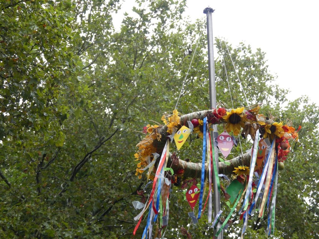 Es beginnt mit dem Gottesdienst um 10:30 Uhr. Wie schon seit Jahren Tradition in St.Marien, haben die DJK Schützen den Erntekranz vorbereitet. Die Kita-Kinder haben mit viel Freude die Gestaltung übernommen. So wird vor dem Altar der bunt geschmückte Kranz neben den Erntegaben gesegnet und nach dem kindgerecht gestalteten Gottesdienst auf der Wiese vor der Kirche feierlich aufgehängt.