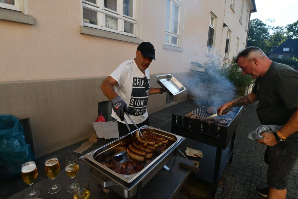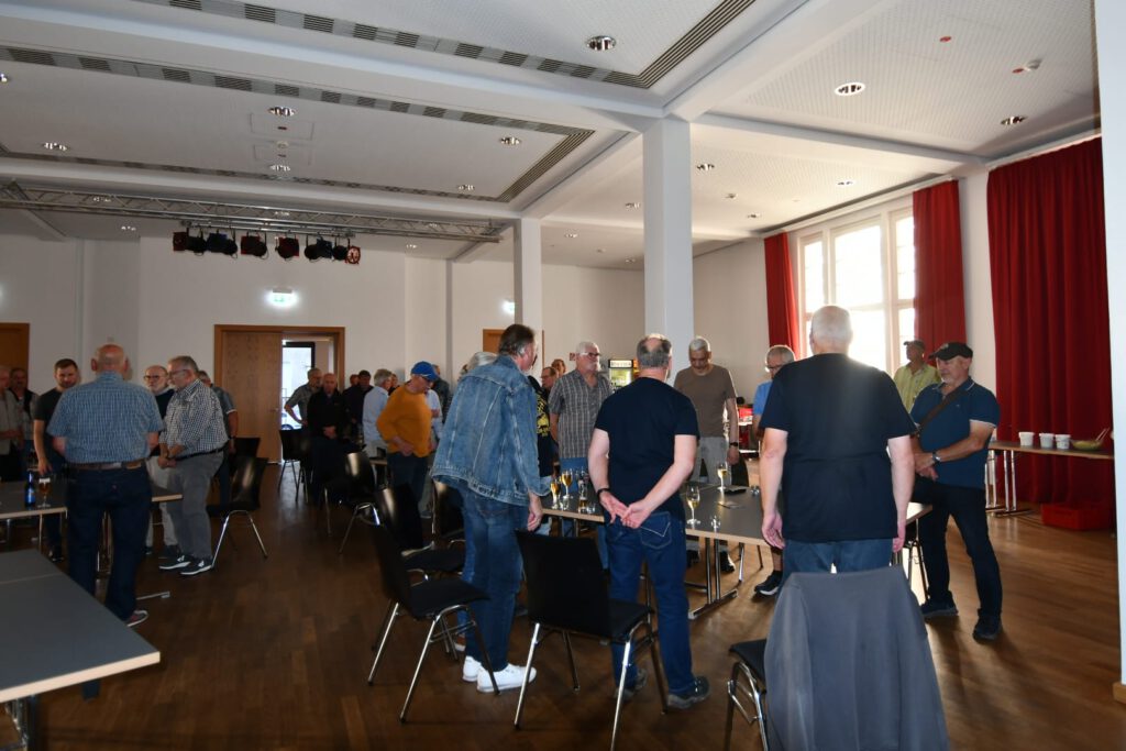 Nach dem offiziellen Teil ging es in den Innenhof, wo Grillfleisch und Freigetränke bereitstanden. Dort entwickelte sich eine herzliche und lebendige Atmosphäre. In kleinen Runden wurde gefachsimpelt, gelacht – zwischen Anekdoten aus alten Zechen-Tagen und Gesprächen über das, was noch vor uns liegt. Gerade dieser Austausch macht die Abende des RDB so wertvoll.