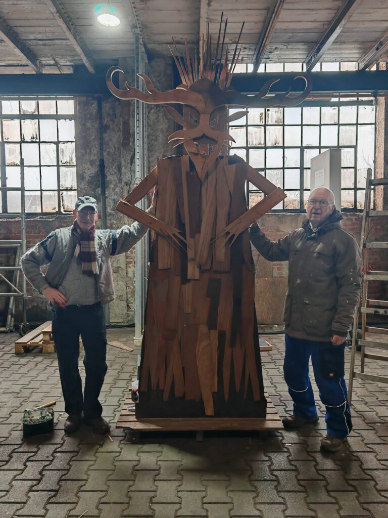 Joscha war für euch beim Aufbau in der historischen Zechenwerkstatt vor Ort und die Vorfreude ist riesig! Das ehrenamtliche Team von Zum Glück Auf ist extrem kreativ und fleißig. Das Wichtigste vorab: Der Wintergeist ist gebaut! Die imposante Holzfigur steht bereit und sieht absolut fantastisch aus – bereit, um Väterchen Frost endgültig zu vertreiben.