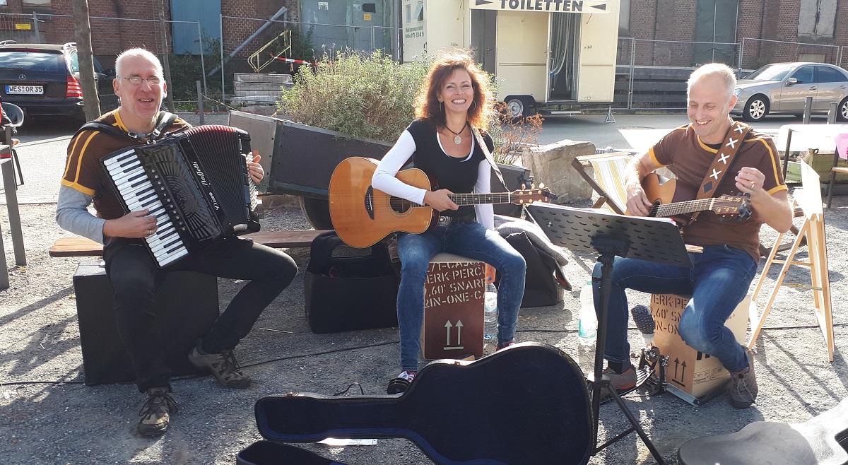 - Das Trio „Übertaktet“ verlegte auf dem Parkmarkt einen musikalischen Wohlfühlteppich.
