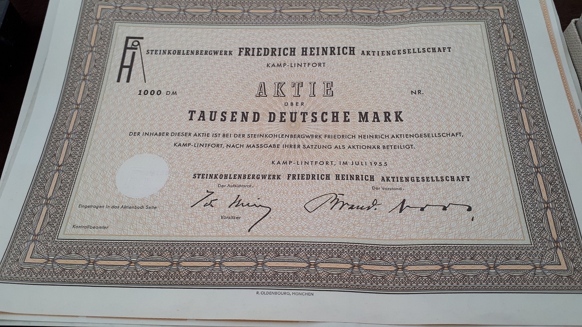 - An anderen Ständen lagen Aktien zum Weiterverkauf aus.