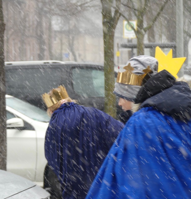 Bis zum Nachmittag waren die Gruppen unterwegs. Bei den besuchten Menschen hinterließen sie den Segensspruch mit den Buchstaben C (für Christus)*M (mansionem=Haus)*B (benedicat=segne) und der Jahreszahl als Zeichen an der Haustür. Ein Lied und der gesprochene Segen gehörten mit zum Programm. Als Dankeschön für ihren Einsatz bekamen die Kinder von vielen Leuten Süßigkeiten, so dass manche am Ende der Runde recht schwere Taschen tragen mussten.