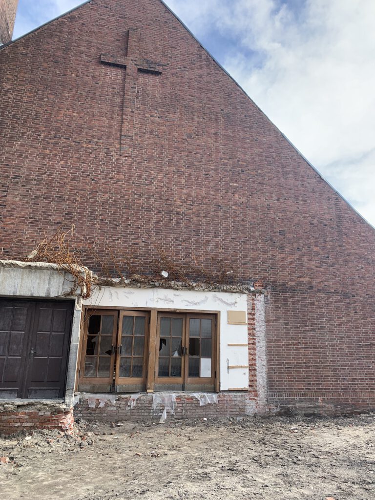 12. März 2024: Der Abriss Die Bagger rollen an. Das Kirchenschiff und der Turm werden niedergelegt, parallel starten die Planungen für die Neunutzung.